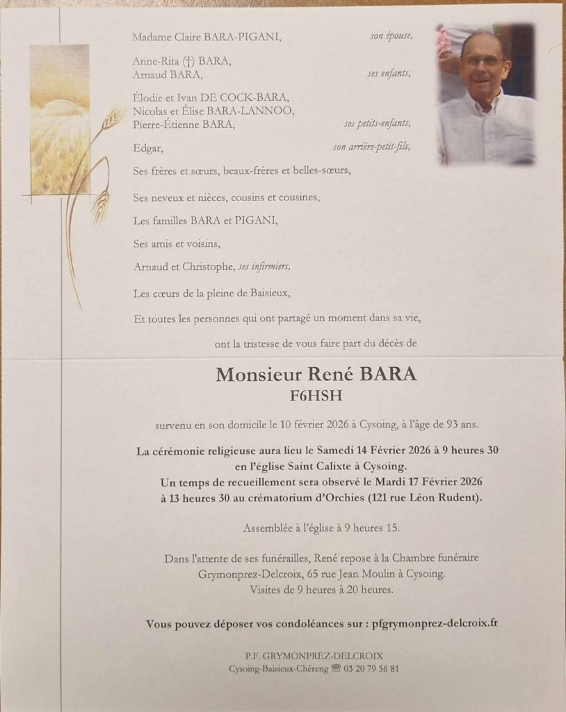 C’est avec tristesse que nous avons appris le décès de René, F6HSH, René était membre de F8KKH, nous perdons un grand télégraphiste, nous lui avions d’ailleurs remis la médaille de l’UFT il y a quelques années…